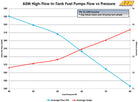 The AEM 340LPH High Flow In-Tank Fuel Pump (PN 50-1000) flows 340 lph (84 gph) at 40 PSI and is capable of supporting over 1,000 HP at 43 PSI.